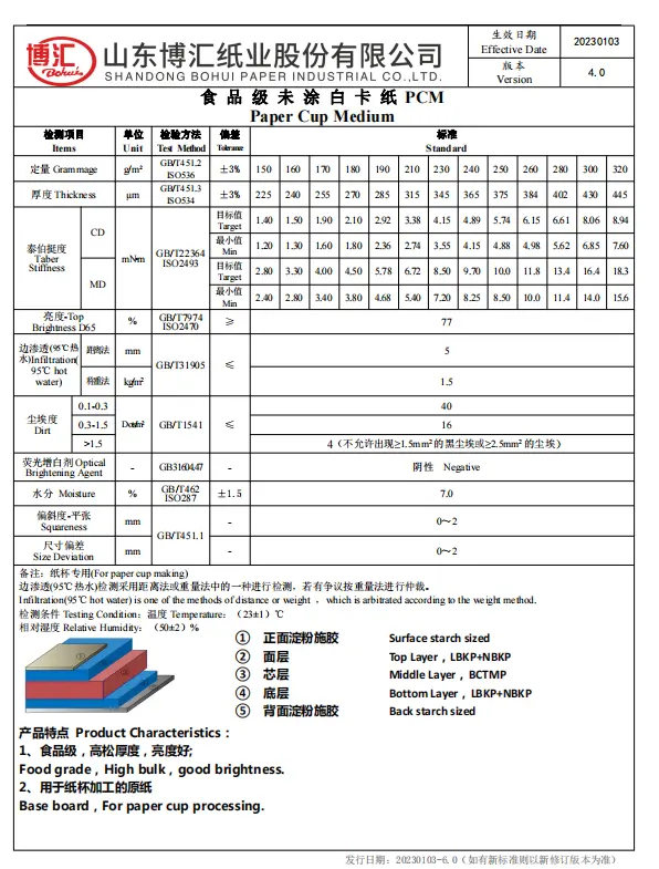 Shandong Bohui Factory has a series of cupstock and food grade Paper for various purposes. So what is the difference between these different brands?PCM: ordinary